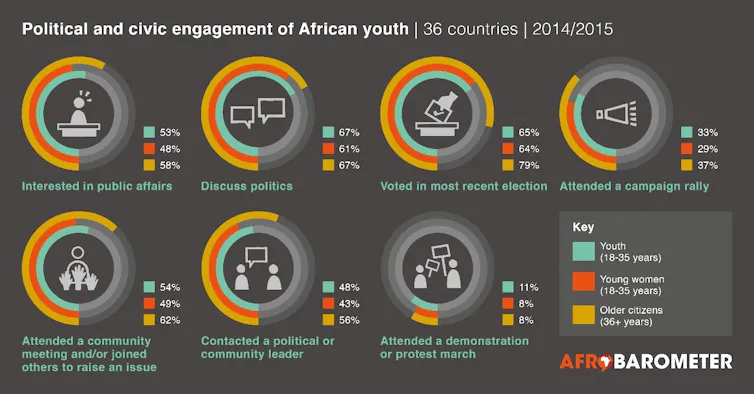 Yet a new survey by Afrobarometer, a non-partisan research network, shows a wide gap between these aspirations and the reality of youth political engagement.