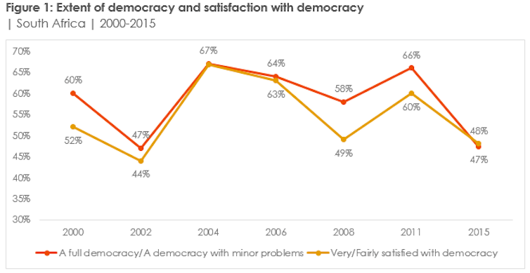 Looked at cumulatively since Afrobarometer’s first surveys in 2000, the most recent results suggest that South Africans are becoming increasingly demanding of the country’s democracy. What was good enough at the dawn of democracy is no longer adequate.